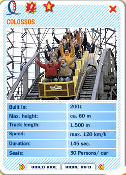 Kierros huipentui odotettuun Colossos vuoristorataan. Euroopan suurin puinen vuoristorata oli sangen vaikuttavan näköinen. Korkein kohta 60 m ja huippunopeus 120 km/h!