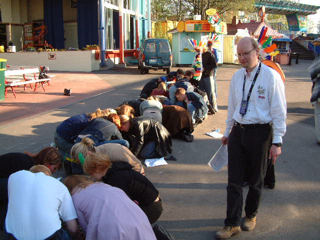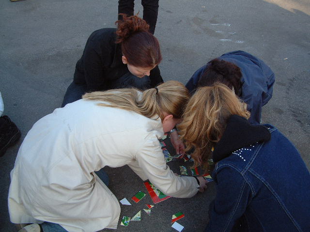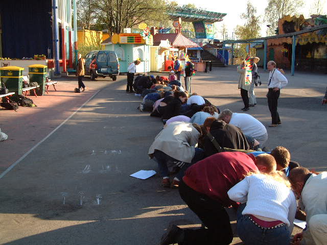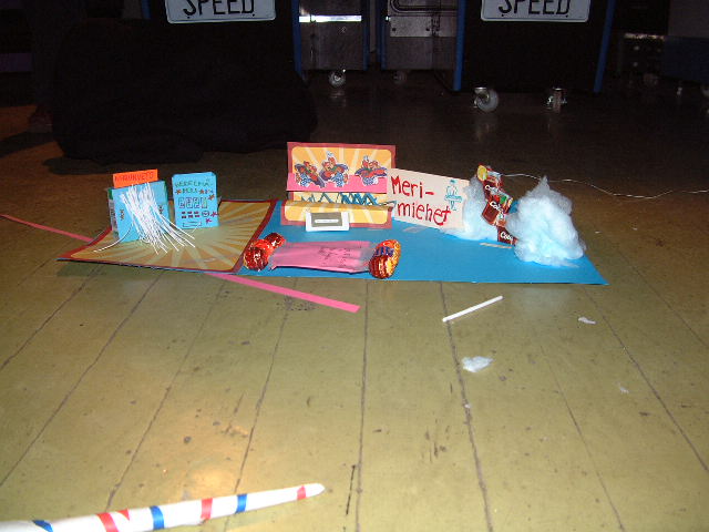 Café Linnangrillissä oli tarjolla ruokaa ja juomaa kahden tunnin kilpailu-urakasta selvinneille. Pistelaskun ja pienoismallityön arvostelun jälkeen julistettiin voittaja, joka oli valkoinen joukkue!