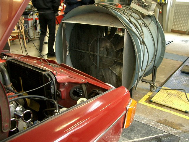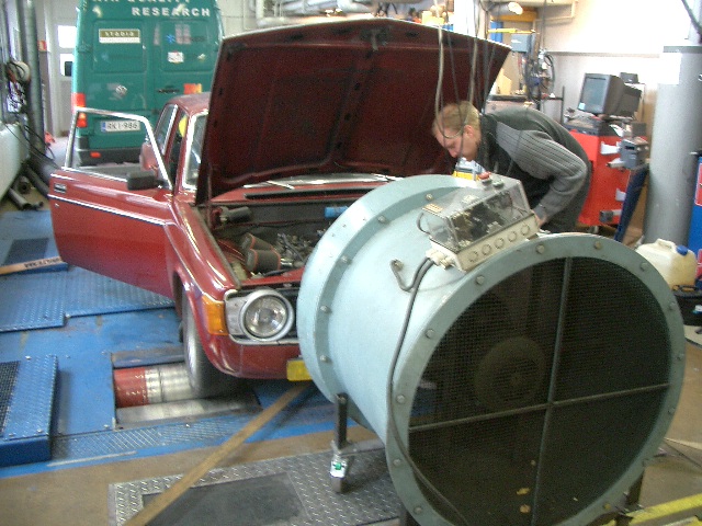Auto penkkiin, puhallin eteen, liinat kiinni ja ei kun menoksi. Heti aluksi huomattiin kokonaisennakko liian pieneksi, sillä sytytysennakkoa muuttamalla saatiin yli 10 kW ero mittauksiin. Toiseksi kaasuttimien ilmansuodattimilla suoritettu mittaus antoi suuremman max. tehon, joten ilmasuuttimia pitää pienentää. Samalla mietittiin Lambda-anturin kiinnitysreiän poraamista ja anturin holkin asennusta,