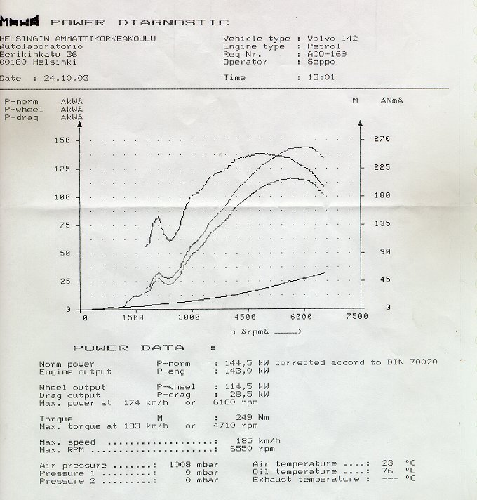 Vappuaattona 30.4.2003 tehtiin Sepon kanssa pikainen ja alustava tehonmittaus Helsingin ammattikorkeakoululla. Seppo on valmistumassa insinööriksi autopuolelta, ja meikäläinenhän valmistui samaisen laitoksen sähköosastolta tietoliikennetekniikan insinööriksi pari vuotta sitten. Tutussa paikassa siis oltiin.