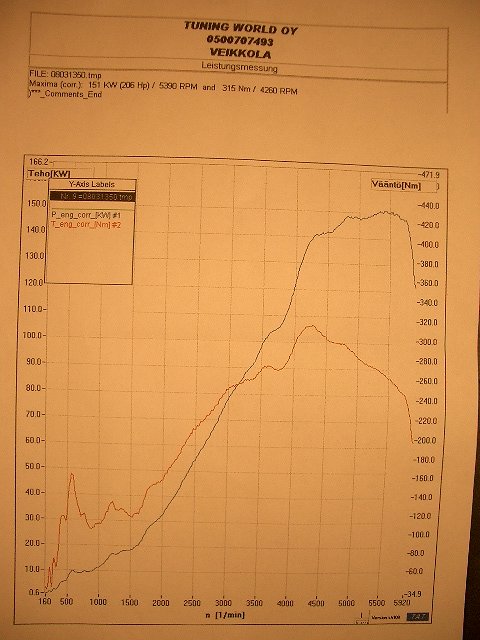 Aloitetaan vaikka tehomittauksesta. Tällä kertaa käytiin vaihtelun vuoksi mittaamassa tehot Tuning World Oy:ssä Veikkolassa.