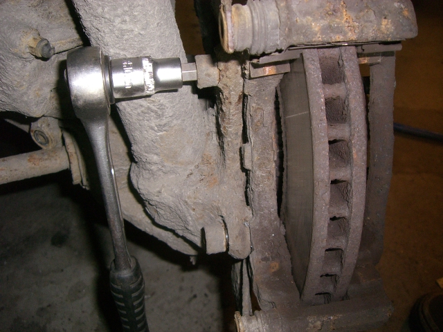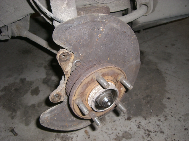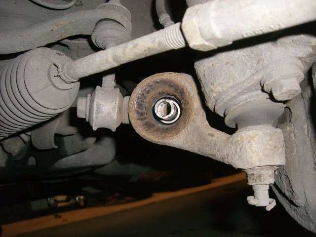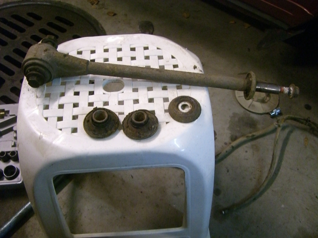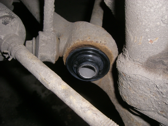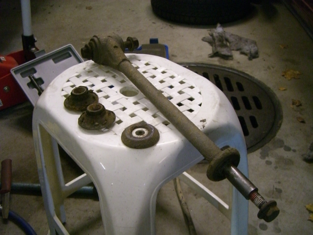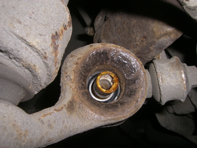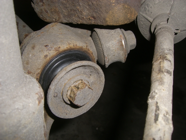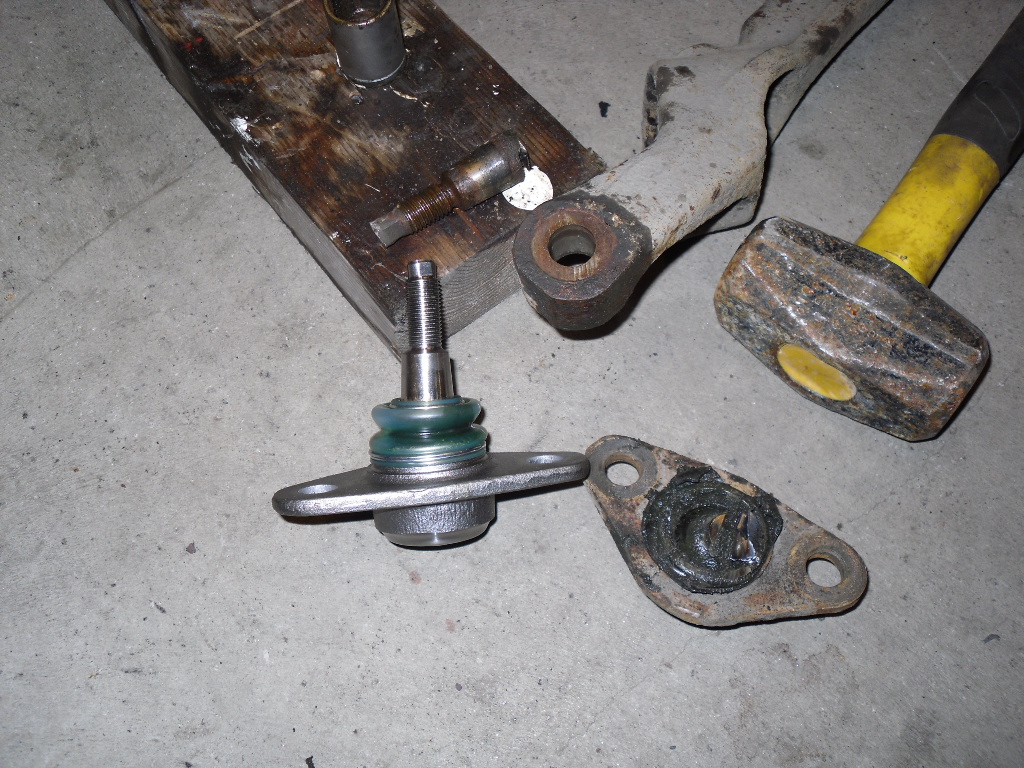 Tuli tehtyä pelimiehen liike ja irrotettiin koko tukivarsi. Ei ollut kummonen homma; kallistuksenvakaajan ja reaktiotangon pultit irti sekä itse tukivarren pultti irti. Ei muuta, tähän meni ehkä 10min.. Sitä ennen kannattaa kuitenkin ottaa irti tai löysätä pallonivelen iskaritolpan kiinnityspultit. Huomautettakoon, että oli yksi pultti niin jumissa, että kiintoavaimen lenkki halkesi kun yritti aukaista lisäputken avulla.. Hylsyllä sitten lähti!