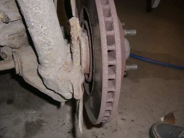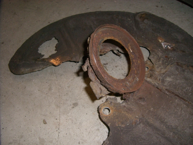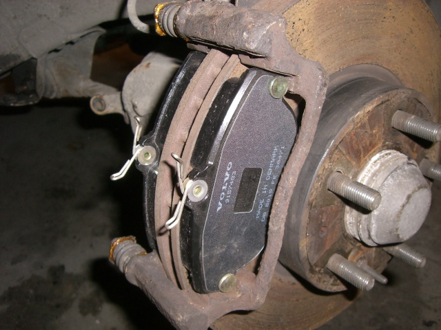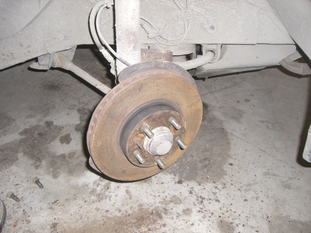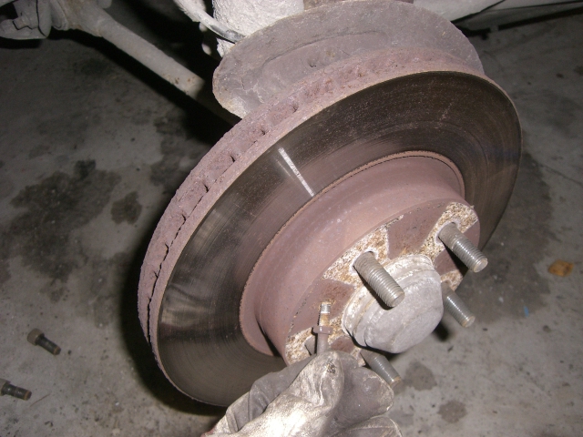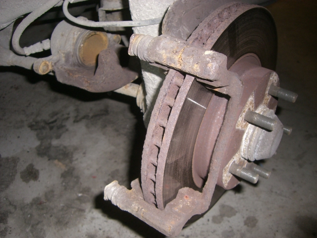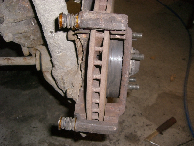 Jarrukilpi irtoaa poistettuasi kolme liinnityspulttia. Vanha oli totaalisen hapero..
