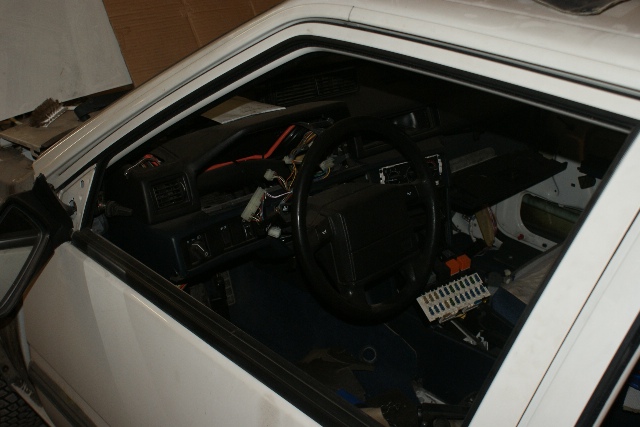 Etu-turvavyöt + kaikki niiden tarvitsemat pultit kiinni ja sisustan muovihärpäkkeet paikoilleen niin kabiini on valmis.