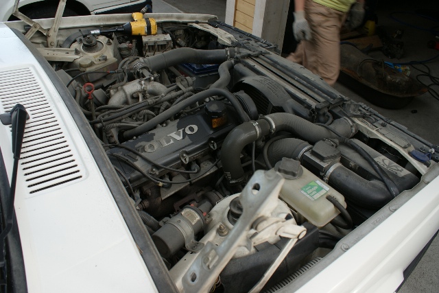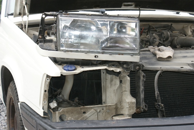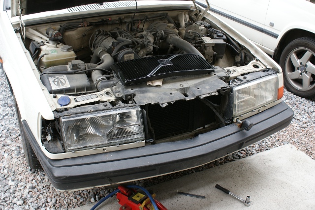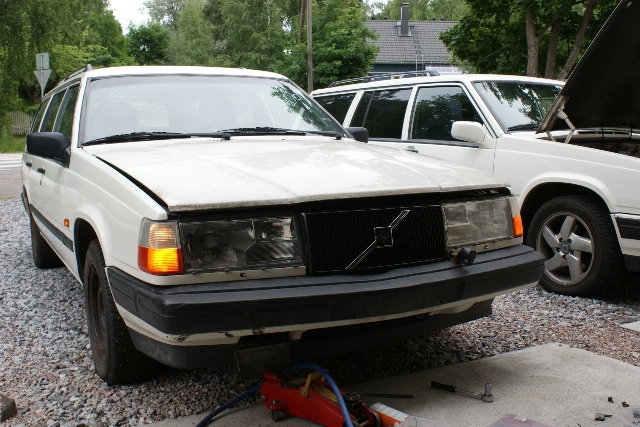 Vanha kärsinyt konepelti pois ja uusi tilalle (omasta 945 purkuautosta)