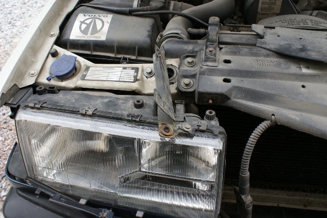 1,5 cm taakse taipunut päällimmäinen tukipelti oikeni kätevästi liinalla. Toinen pää vain kiinni 940 SE purkuauton puskurikiinnikkeeseen;). Noin 95 cm tulipellistä oli kuskin puoli, joten tämä oikaistiin samoihin mittoihin. Lekalla hakkaamista vältettiin SRS törmäystunnistimen takia..