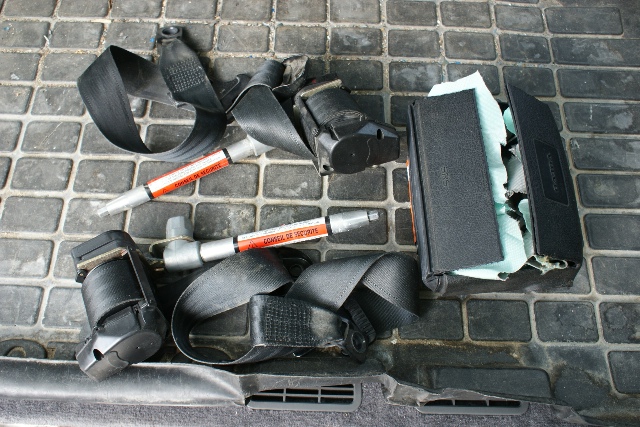 Etu-turvavyöt ja kiristyspanokset saadaan myös em. 940 SE autosta. Vanhat eivät enää toimi jos esikiristyksen panokset ovat lauenneet. Se näkyy siitä, että putken päästä pistää vaijerin päätytappi esiin.