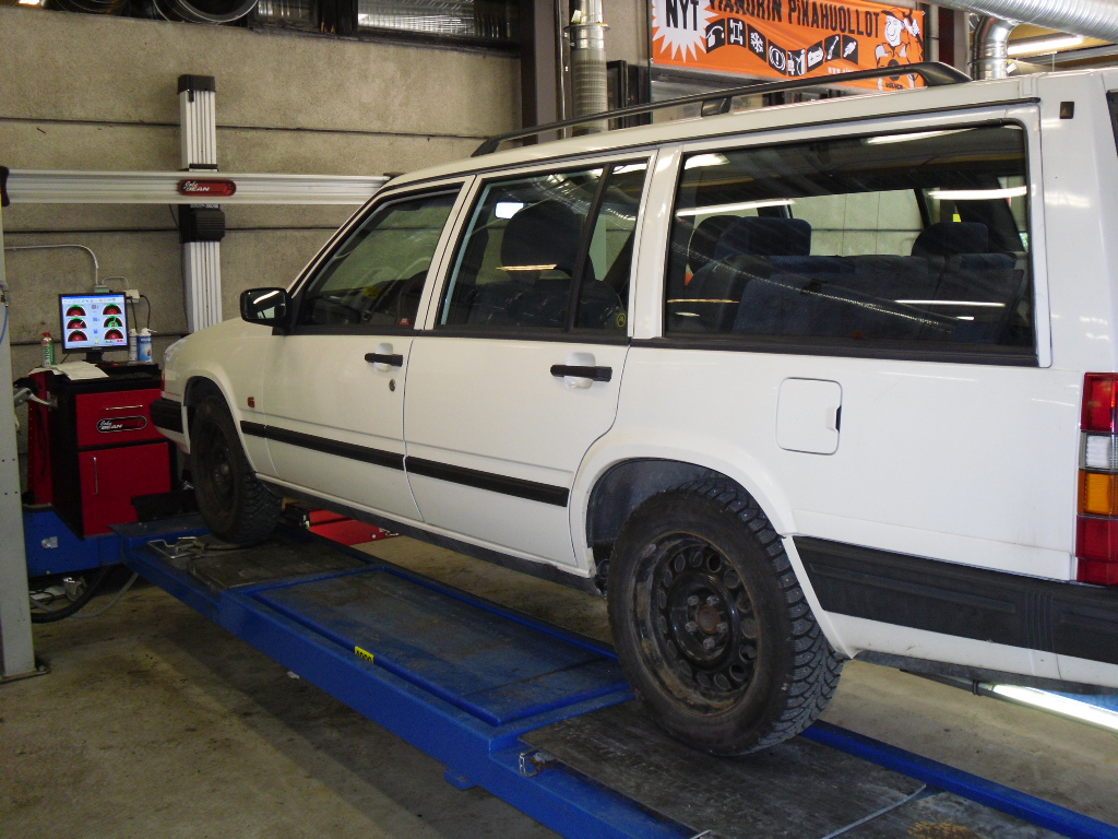 AVK:n katsastukseen vaatima nelipyöräsuuntaus tehtiin Vianorissa. Muuta homautettavaa ei ollut kuin vas. puolen aurauskulma oli pielessä. Camber ja Caster kulmat olivat toleranssien sisällä myös kolaripuolelta.