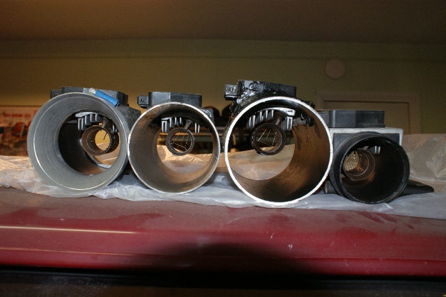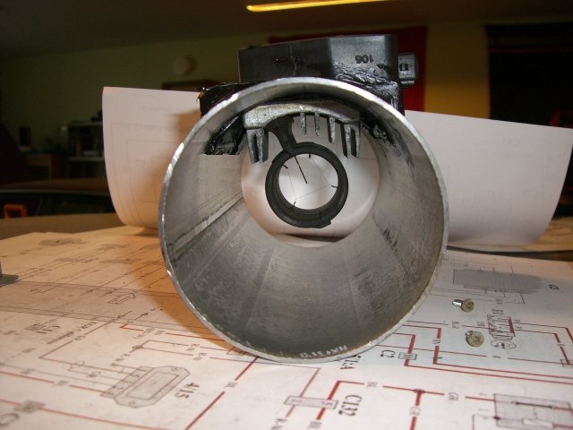 Ilmamassamittarin elektroniikkayksikön siirtäminen isompaan putkeen on aika yksinkertainen tapahtuma. Ainoa vaan ettei paluuta ole enää samaan putkeen, koska se pitää rikkoa jotta yksikön saa irti. vakio taisi olla jotain 70 mm luokkaa, 960 malleista löytyy 80 mm versio.