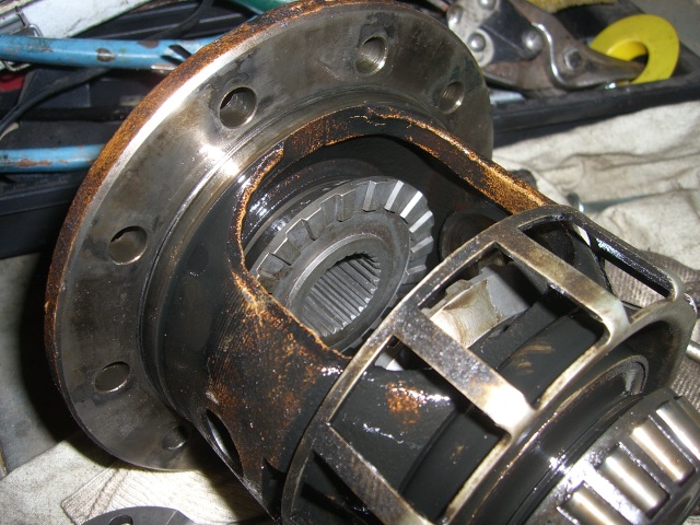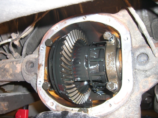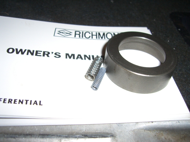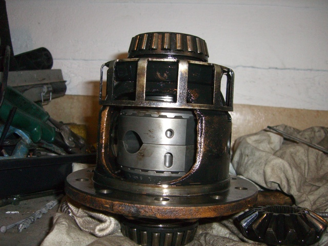 Jousien asentamisen jälkeen, mitataan puoliskojen välys eli rako. Välys löytyy ohjeista ja on ulkomuistista vedettynä n. 3,6 - 4,2 mm paikkeilla. Lukko kasattiin vanhalla tapilla koska uusi ei ehtinyt tulla vielä Summitilta ja Kiikala lähestyy. Tapin vaihtaminen ei liene pakollista, jos se on hyväkuntoinen. Ainakin pari lukkoa on kestänyt toisissa virivolvoissa kasassa orkkistapilla. Palalukko on aika brutaali ja raaka on-off tyyppinen kapistus, joten ei välttämättä kannata laittaa vakio- tai käyttöautoon (näiden sivujen oma mielipide). Lukon toimintaa voi testata perä ylhäällä pyörittämällä renkaasta yhteen suuntaan ja äkisti toiseen suuntaan niin pitäisi alkaa lukon "rallattamaan"/luistamaan . Eli näin lukko toimii esim. tiukassa käännöksessä kun pyörät pyörivät eri nopeuksilla. Muutenhan lukko on tavallaan koko ajan päällä.