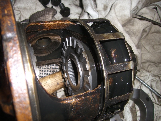 Hammasratas joudutaan irrottamaan, jotta tapin saa lyötyä ulos. Pelti lähtee saksimalla irti. Voit tietty irrottaa laakerin (vaatii erikoistyökalun), jolloin saat peltilevyn ehjänä takaisin.