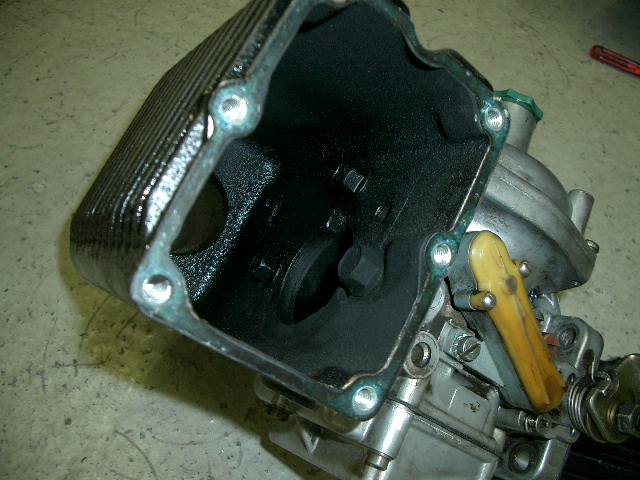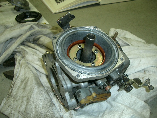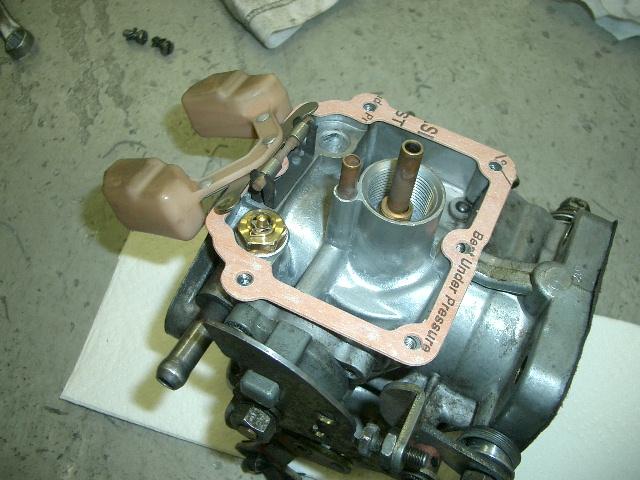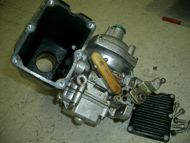 Kaasuttimen kokokammion kansi lähtee irti irrottamalla kuusi ruuvia kannesta. Huoltosarjan mukana tuli uusi neulaventtiili, joka päästää polttoaineen kohokammioon. Muista säätää kohon korkeus kohdalleen, jotta neulaventtiili varmasti sulkee bensan tulon kokokammioon. Muuten saattaa olla että sylinterit kirjaimellisesti lainehtivat polttoainetta. Lopuksi uusi paineen kestävä tiiviste paikoilleen.