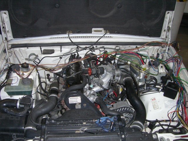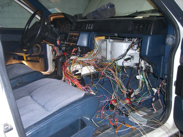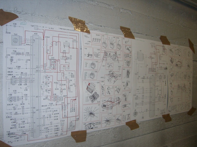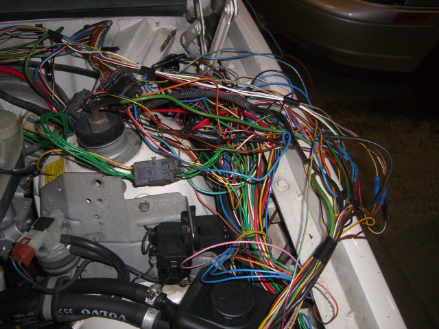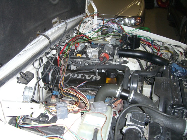 Johdotusten purkaminen aloitettu. 900-sarjassa on ruiskutusjärjestelmän johdot integroitu auton muuhun johdotukseen eli työtä on luvassa näiden erottelemisessa. Kaaoksesta huolimatta liittimet, värikoodit, ryhmittelyt, ym. ovat kohtuullisen selkeitä. Aina välillä on syytä tarkistaa diagnostiikkayksiköstä, että ei tule vikakoodeja esille. Auto on tarkoitus pitää ajokuntoisena niin pitkälle kun on mahdollista ennen moottoreiden swappitapahtumaa.