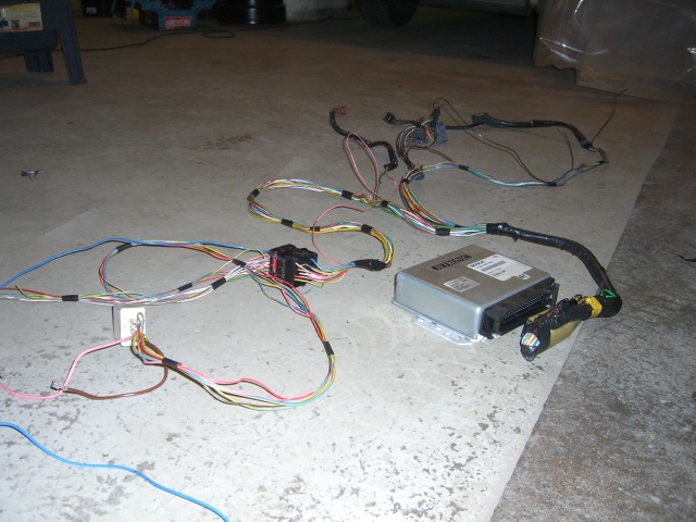 Apparin puolella ovat ruiskuboksin johdotukset. Ruiskuboksista on moottoritilaan tuleva johdotus ok. Vielä pitää selvittää ruiskuboksista autoon sisälle sähkökeskuksen suuntaan menevät johdot. Myös moottorin oma johdotus pitää vielä selvittää; startti, öljynpaine, lämpötila, laturi...