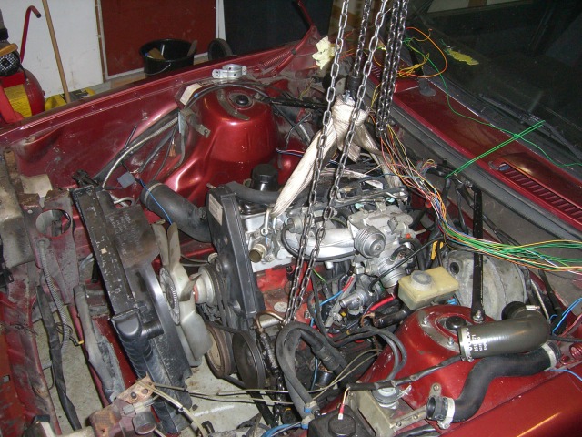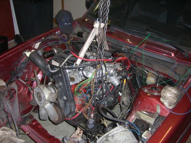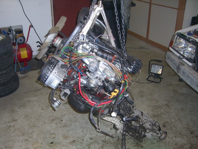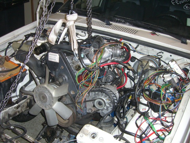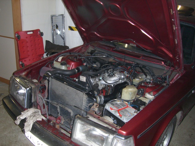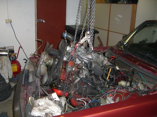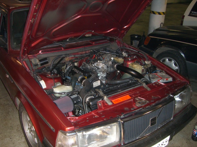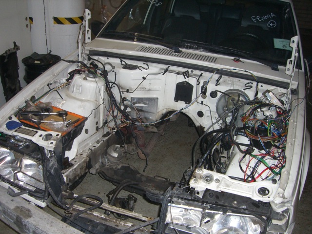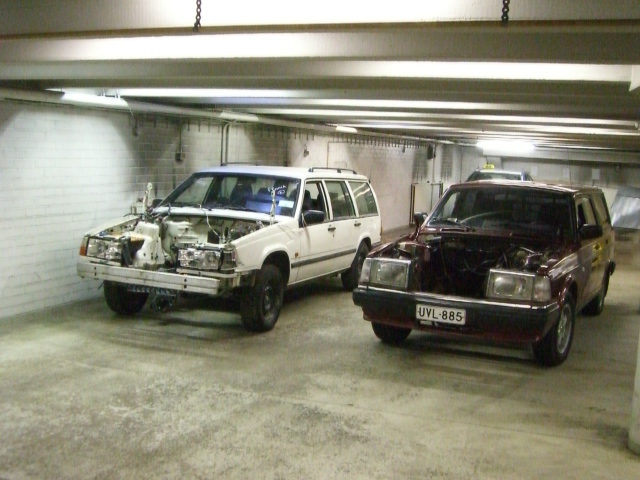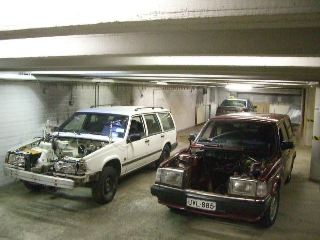 Koneet on vaihdettu ja molemmat toimivat! Hommaa ja puuhaa oli ihan riittävästi kun tekee swapin kahden ajokuntoisen auton kanssa. Kaikkea pientä näprättävää oli mitä ei tässä jaksa alkaa luettelemaan. Mm. ohjaustehostimien pumput ovat eri puolilla autoja, joten latureiden paikkaa joudut vaihtamaan. Johtosarjat saatiin mukavasti piiloon 940:stä puretuilla suojakuorilla. 200:een tuli jossain välissä vaihdettua parempi jarrutehostinkin pizza-lautasen tilalle, jne...