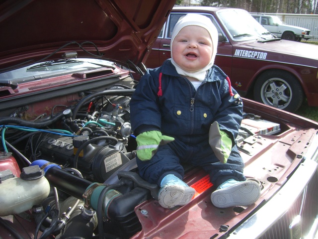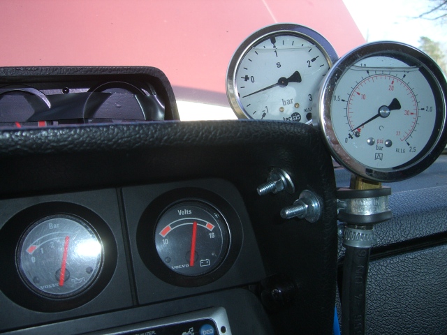 Pakopainemittari kehiin, jotta päästään kartalle kaasujen vastustuksesta. Kuparijengaa (=jarruputkea) kuumimpien henkäyksien jäähdyttämiseen. Pakopaineet näyttävät olevan +0,5 bar edellä ahtoja, eli jos ajellaan 1,1 bar ahdoilla niin pakopaine on 1,6 bar lukemissa. Ei mitään hälyttävää siis vielä maltillisilla ahdoilla. Petrille kiitokset osien hommaamisesta, juottamisesta ja pakosarjan liitoksesta! Toinen mittari lisää katu-uskottavuutta kummasti ja saa häätää uteliaimpia pois auton kimpusta marketin parkkihallissa;).