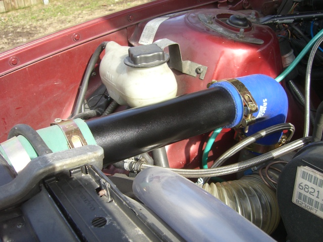 Ahtoputkea isonnettiin 2,5 tuuman putkella ja uudella silikonikumin liitoksella. Eron huomaa hyvin kuvista..