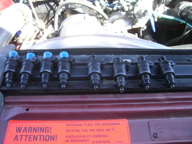 Asennettiin säädettävä bensan paineensäädin - joka sopi suoraan orkkiskiskoon - sekä painemittari ja vihreät 464cc "R"-suuttimet. R-suuttimet todettiin pian riittämättömiksi ja vaihdettiin mustiin Siemens 525@3bar suuttimiin.